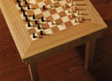 | This lovely and compact games table can serve as both a pleasing end table and an easily situated games table in small or large spaces. The contrast of inlaid light maple and dark oak to form the contrasting game squares shows the beautiful grains... |